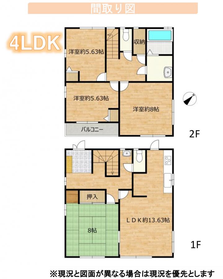 間取り詳細 | LDK13.63帖、洋室8帖、洋室5.63帖、洋室5.63帖、和室8帖 |