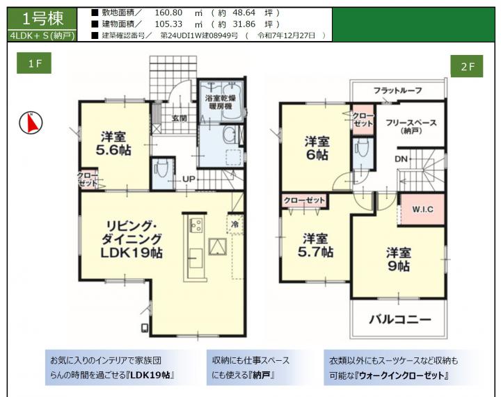 都市ガス、家族団らんの時間をひろびろ過ごせる19帖LDK、収納にもリモートワークにも利用できる納戸スペース、