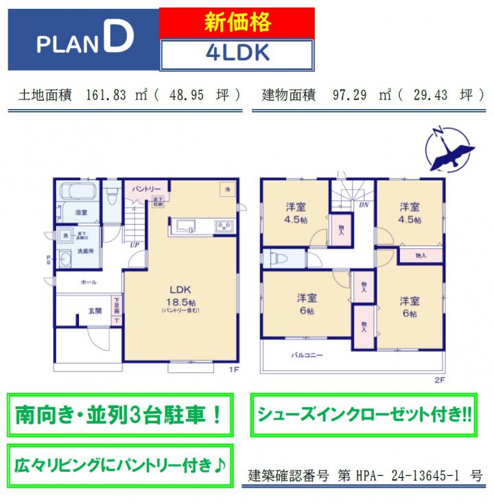 】晃望台エリアに徒歩圏内【0289-62-8544へお電話ください】全区画3台駐車可能、パントリー収納、シューズインクローク玄関収納のあるおうち