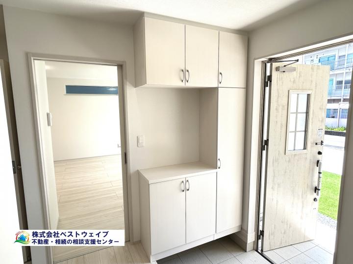 玄関シューズインクローク収納、雨戸シャッター付き、一部カーテンレール付き、全室照明付き、パントリー収納、浴室乾燥機、温水洗浄便座、浄水器一体型蛇口、3口ガスコンロ、床下収納、クローゼット枕棚・ハンガーパイプ標準装備