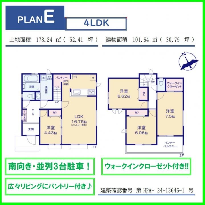 | 間取り詳細 | LDK16.7帖、洋室7.5帖、洋室6.6帖、洋室6帖、洋室4.4帖、S2帖 |