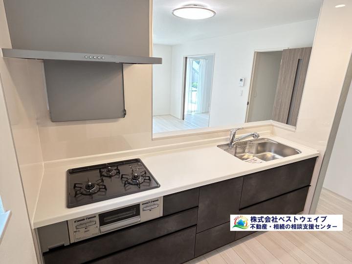 ウォークインクローゼット、雨戸シャッター付き、一部カーテンレール付き、全室照明付き、パントリー収納、浴室乾燥機、温水洗浄便座、浄水器一体型蛇口、3口ガスコンロ、床下収納、クローゼット枕棚・ハンガーパイプ標準装備